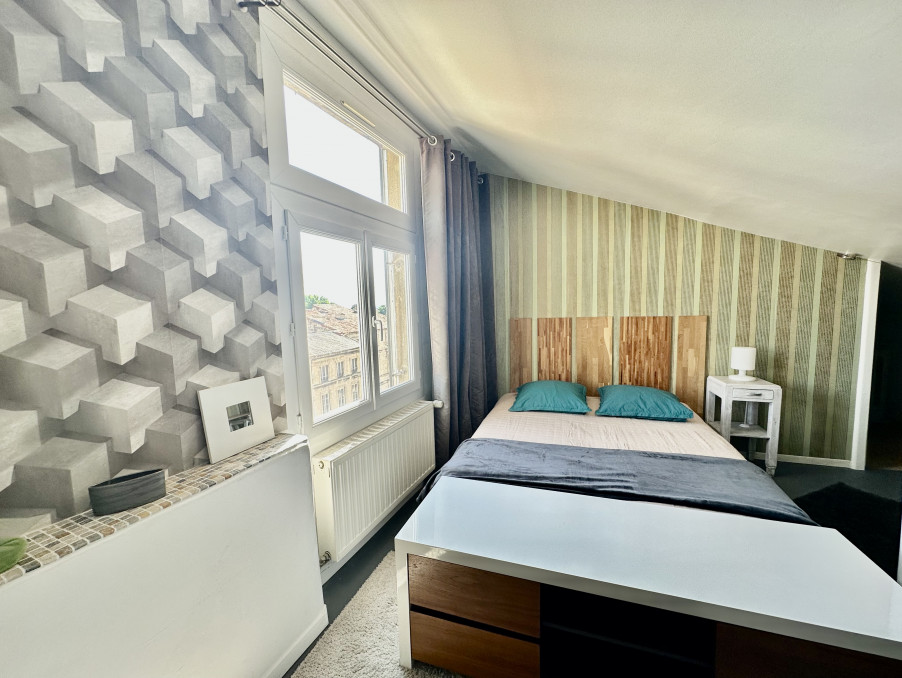 Cet appartement, dans un bel immeuble en pierre, en centre historique, est très agréable à vivre, car parfaitement au calme (isolation phonique excellente) et lumineux (double exposition grandes fenêtres). Il offre une très belle vue donnant sur l’Hôtel de ville et les remparts.