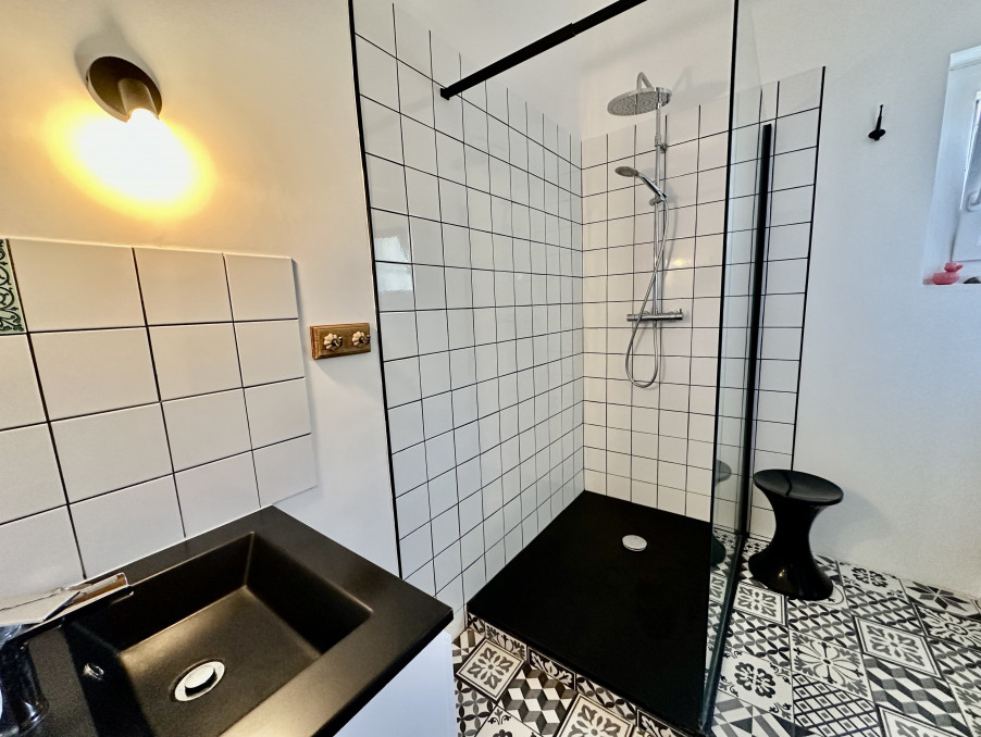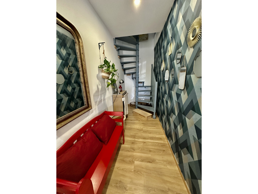 - Au 2e niveau : une cuisine, un salon, une chambre et une salle d'eau et un WC séparé.